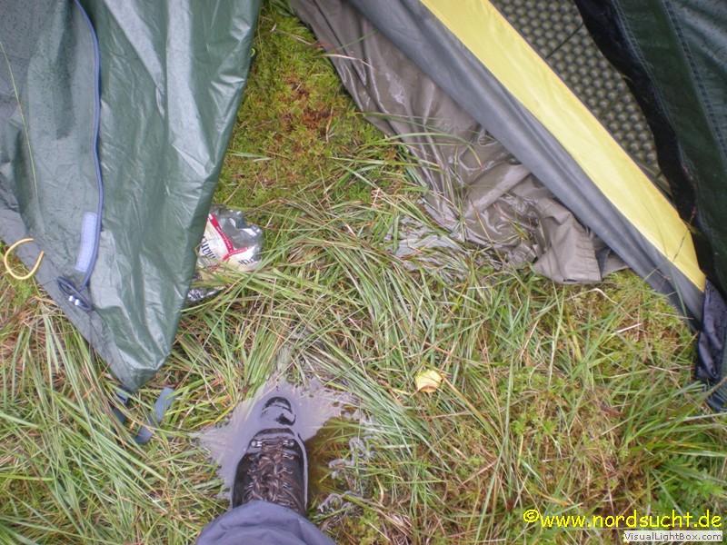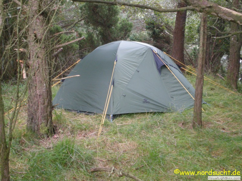 Da wir permanent Regen hatten wurde das Zelt auch teilweise im Regen auf und abgebaut, dies geht bedingt, ist aber nicht so toll wie bei Zelte mit außenliegendem Gestänge.
