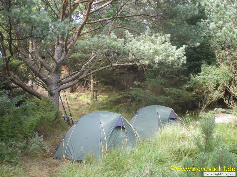 Auf der Höhe von Haugesund ca. 200m weg vom direkten Meer auf ca. 80m Höhe (fast höchster Punkt da) mussten wir Wetter und sicherheitsbedingt auf einem windungeschütztem Felsen übernachten. Das Abspannen ging bodenbedingt nur schlecht, an Steine sammeln war nicht mehr zu denken. Wir haben dann die stürmigste Nacht unseres Lebens erlebt.